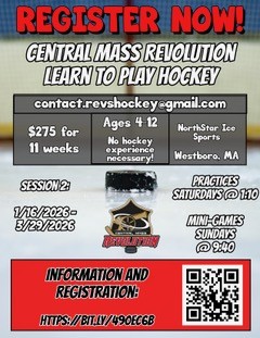 Central Mass Revolution Youth Hockey Raffle Fundraiser, running November 7 – December 5